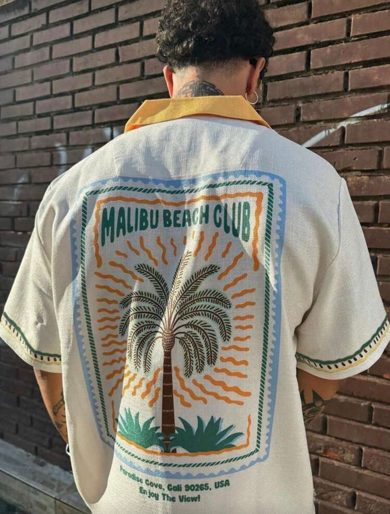 The Malibu Beach Club Shirt features a relaxed fit with a lightweight woven fabric, designed for comfort and easy everyday wear. Finished with bold front and back tropical graphics and an open collar, it delivers a laid-back yet elevated look.