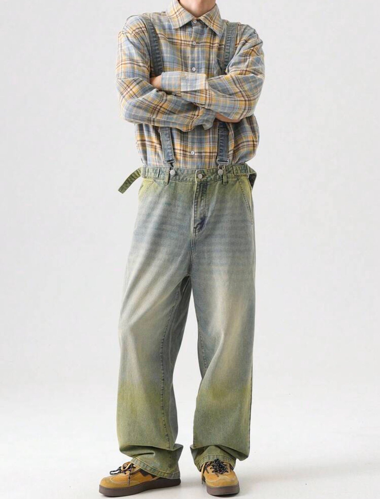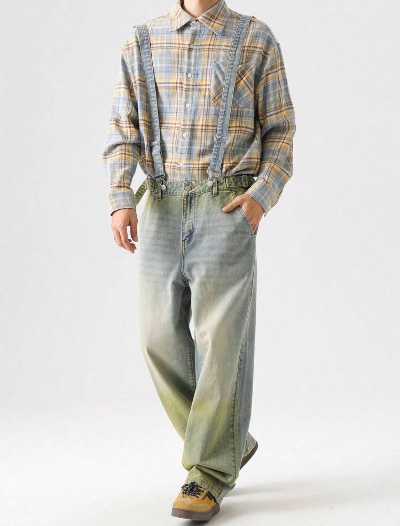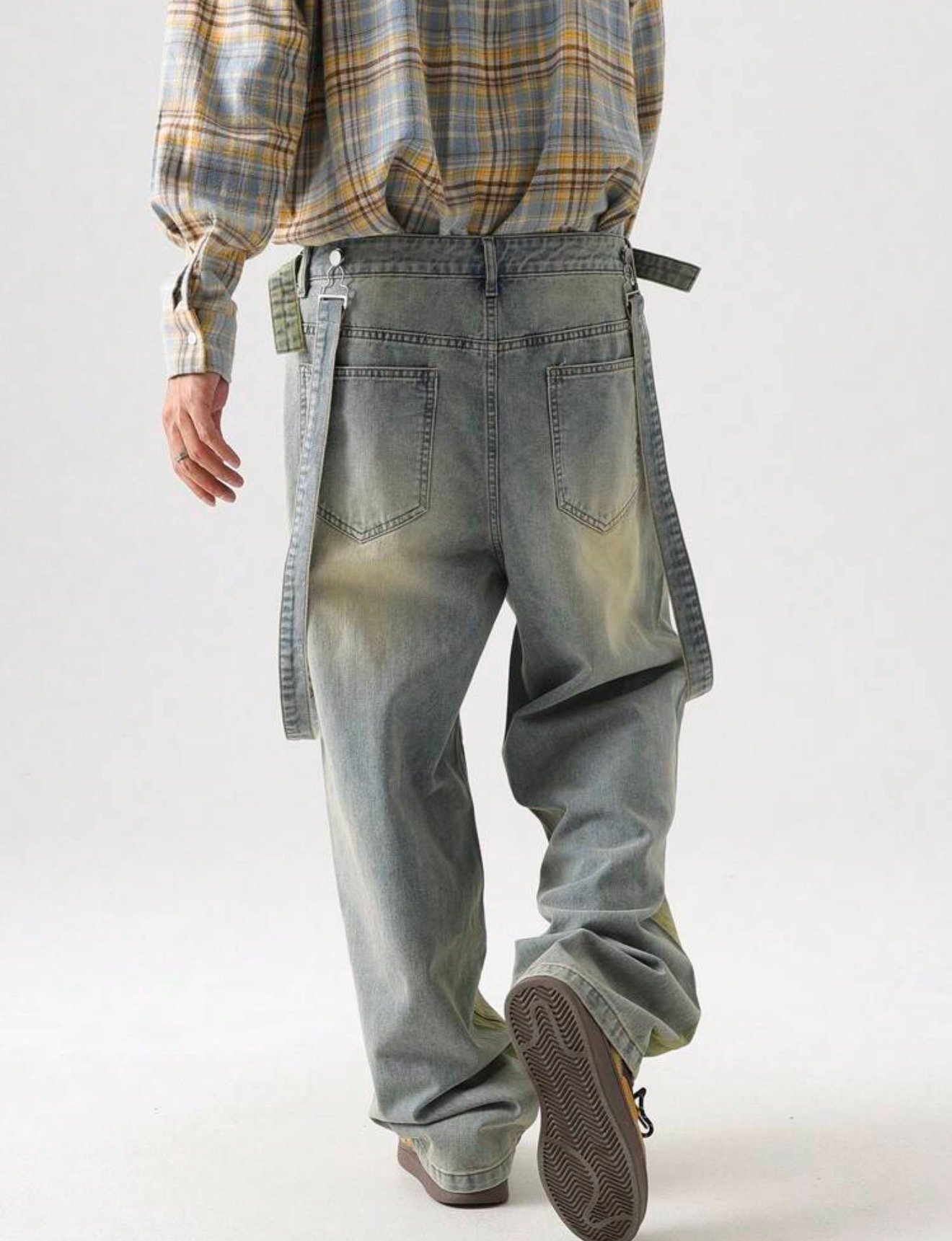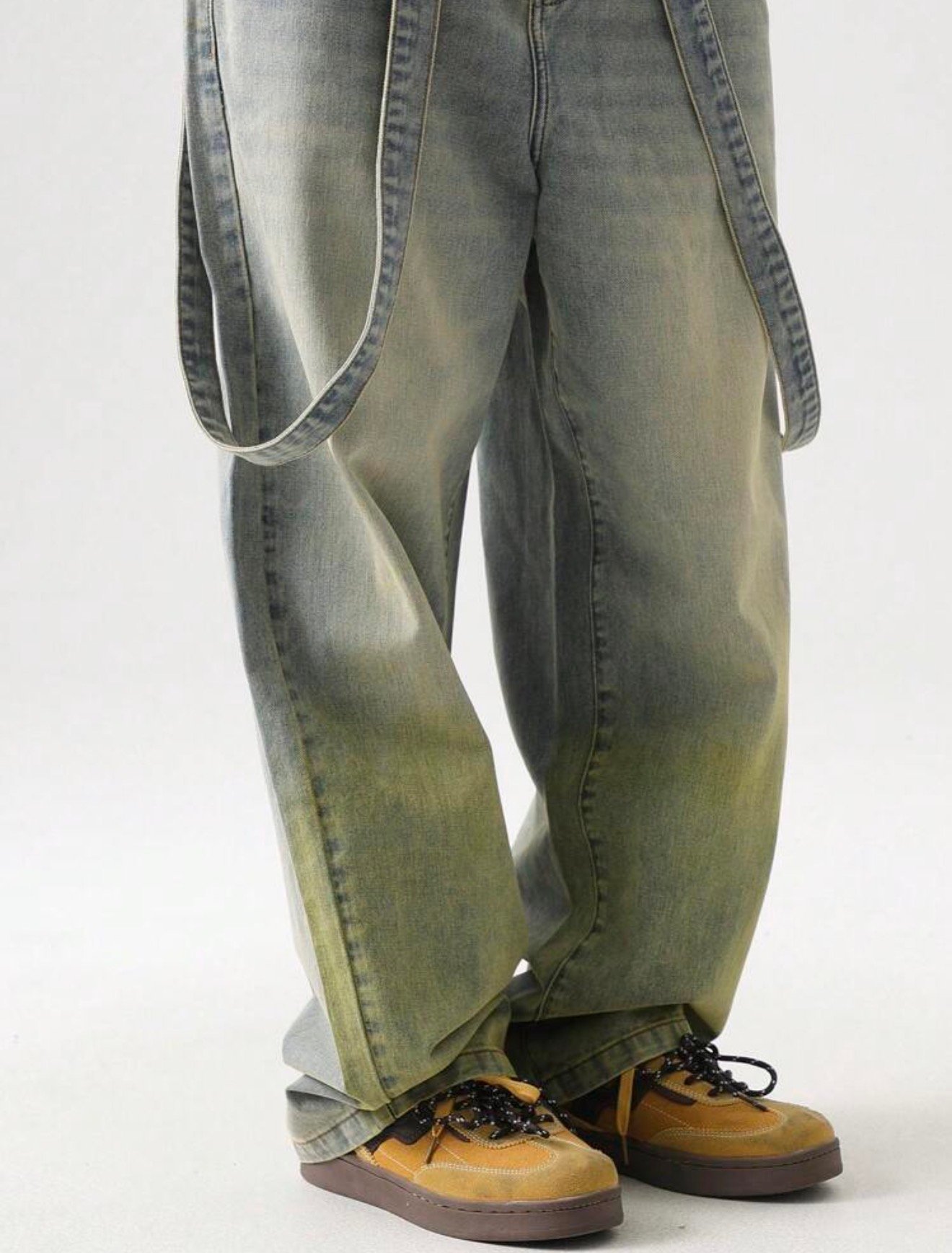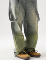 The Vintage Fade Suspender Denim is a statement piece built for those who move differently. Featuring a washed, slightly distressed finish with subtle green undertones, this design brings a unique, worn-in aesthetic that stands out without trying too hard.