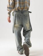 The removable suspender straps add versatility—wear it your way, either styled up for a bold street look or stripped back for a clean, relaxed vibe. The wide-leg cut and structured denim create a strong silhouette while keeping comfort at the core.